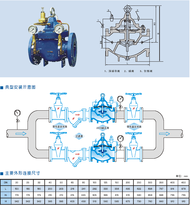 200X減壓閥是一種利用介質(zhì)自身能量了調(diào)節(jié)與控制管路壓力的智能型閥門(mén)。用于生活給水、消防給水及其他工業(yè)給水系統(tǒng),通過(guò)調(diào)節(jié)減壓導(dǎo)閥,即可調(diào)節(jié)主閥的出口壓力。出口壓力不因進(jìn)口壓力、進(jìn)口流量的變化而變化,安全可靠地將出口壓力維持在設(shè)定直上,并可根據(jù)需要調(diào)節(jié)設(shè)定直以達(dá)到減壓目的。該閥減壓精確,性能穩(wěn)定、安全可靠、安裝調(diào)節(jié)方便,使用壽命長(zhǎng)。 |