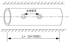 將管道參數(shù)輸入主機(jī),計(jì)算出安裝距離(由于采用插入式探頭,建議均使用直接測(cè)量方式,即Z安裝方式)定出兩個(gè)探頭的位置,安裝距離為兩個(gè)探頭的中心距。