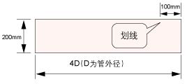 制作定位紙:取一條長(zhǎng)4D(D為管徑),寬200mm(或D)的矩形紙帶,在距邊緣約100mm處劃一條線; |