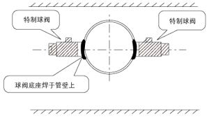 | 將球閥底座分別焊接在A和B兩點(diǎn)上。 注意球閥座中心點(diǎn)一定要分別與A和B兩點(diǎn)重合。 |