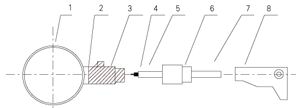 1、探頭 2、球閥底座 3、球閥 4、導(dǎo)向螺紋 5、緊鎖螺母 6、接線盒 7、信號(hào)電纜 |