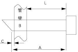探頭的長(zhǎng)度A和管壁厚度B已知,探頭留在管道外側(cè)長(zhǎng)度L也可測(cè)量,只需L=A-B,并使c=0即可。 |