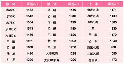 水、海水、酸堿液、食物油、汽油、柴油、原油、酒精、啤酒等能夠傳播超聲波的均勻液體 |