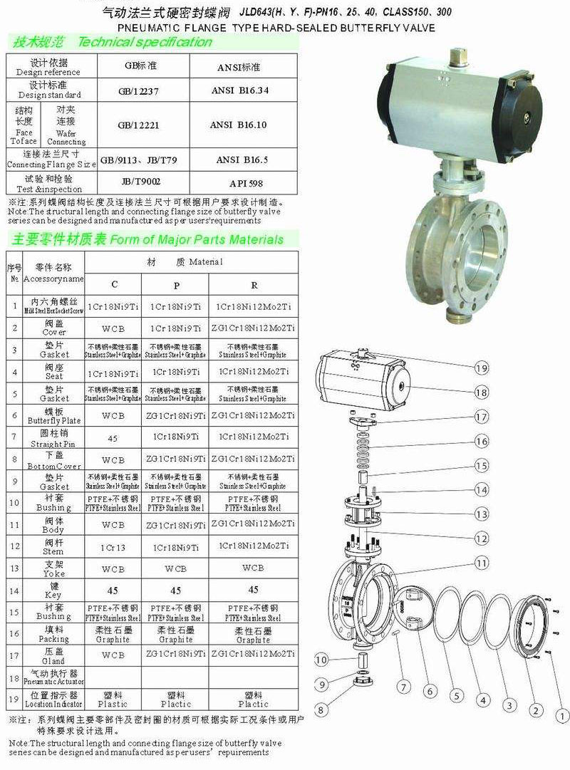 氣動(dòng)法蘭硬密封蝶閥JLD643H