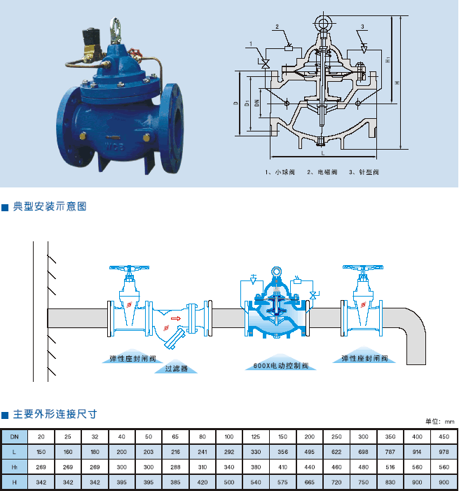 600X電動控制閥是一種以電磁閥為向導閥的水力操作式閥門。常用于給排水及工業系統中的自動控制,控制反應準確快速,根據電信號遙控開啟和關閉管道路系統,實現遠程操作。并可取代閘閥和蝶閥用于大型電動操作系統。閥門關閉速度可調,平穩關閉而不產生壓力波動。該閥門體積小、重量輕、維修簡單、使用方便、安全可靠。電磁閥可選用交流電220V,或直流電24V,可根據各種場合選用常開或常閉型均可。