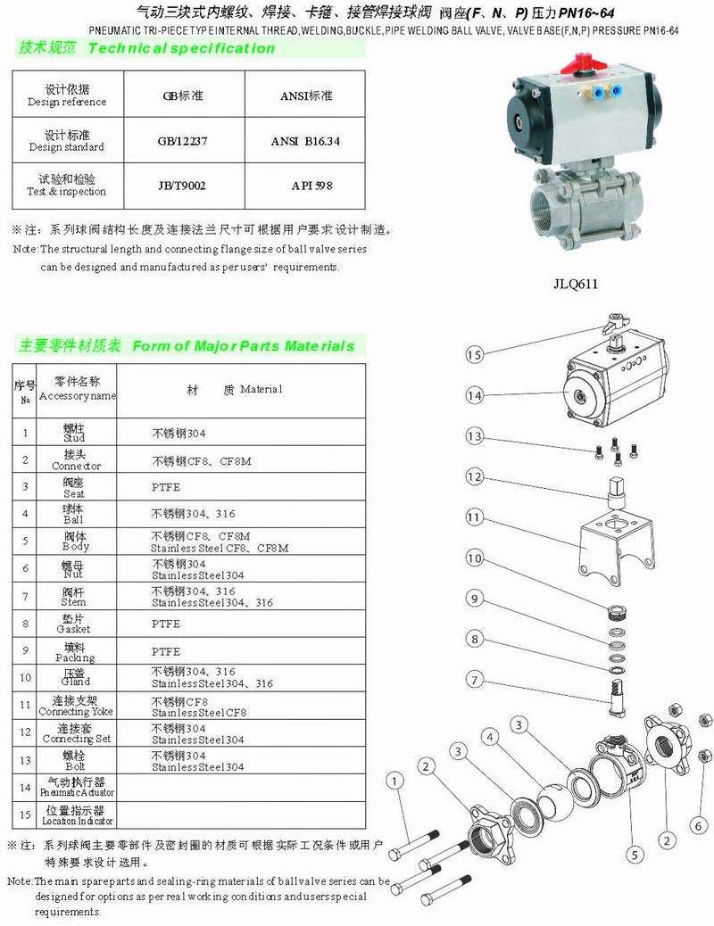 JLQ6氣動(dòng)三塊式內(nèi)螺紋/焊接/卡箍/接管焊接球閥是我公司的優(yōu)質(zhì)產(chǎn)品之一,在上海JLQ6氣動(dòng)三塊式內(nèi)螺紋/焊接/卡箍/接管焊接球閥廠家中享有極高的品質(zhì)聲譽(yù)與服務(wù)評(píng)價(jià).
