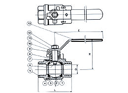 注:二片式球閥連接形式另有對焊(BW)承插焊(SW),并均可帶國際標(biāo)準ISO支架和鎖定裝置 |